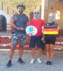 - Sie können Ihren Schal mitbringen, und der Reiseleiter wird Ihnen helfen, ihn richtig zu tragen, um Sie vor Staub und Wüstensand zu schützen.