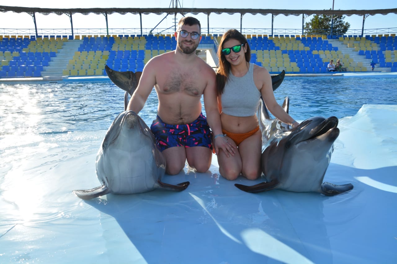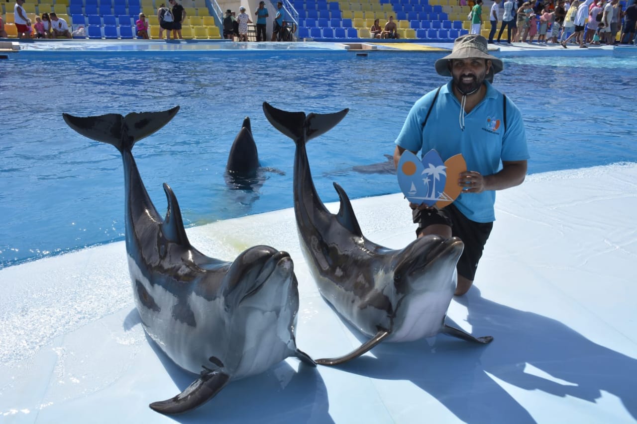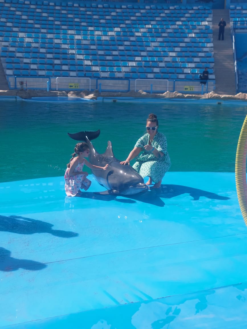 - Photos with Dolphins after the Show Finish Directly outside the pool “Adults + Kids”.