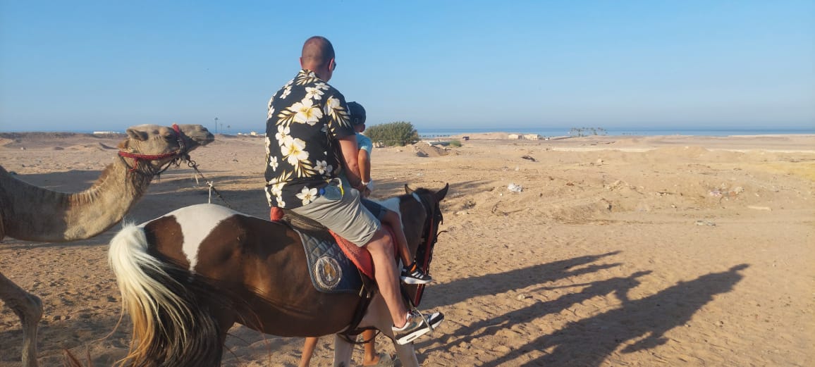 Then the guide helps you ride the horse of your choice, then you set off in the desert with the children and family for an hour to two until you reach the beach and take the most beautiful pictures at sunset and start the horse running experience with the help of the guide, start now with a special Luxury Experience for families with us and get a private transfer from your hotel from Makadi Bay.