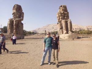 Amenhotep III “Kral Amenhotep III” Mezar Tapınağı’nın hemen yanında bulunan en önemli dev heykellerin hatıra fotoğraflarını çekerken.